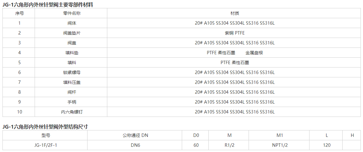 JG-1六角形內(nèi)外絲針型閥概述