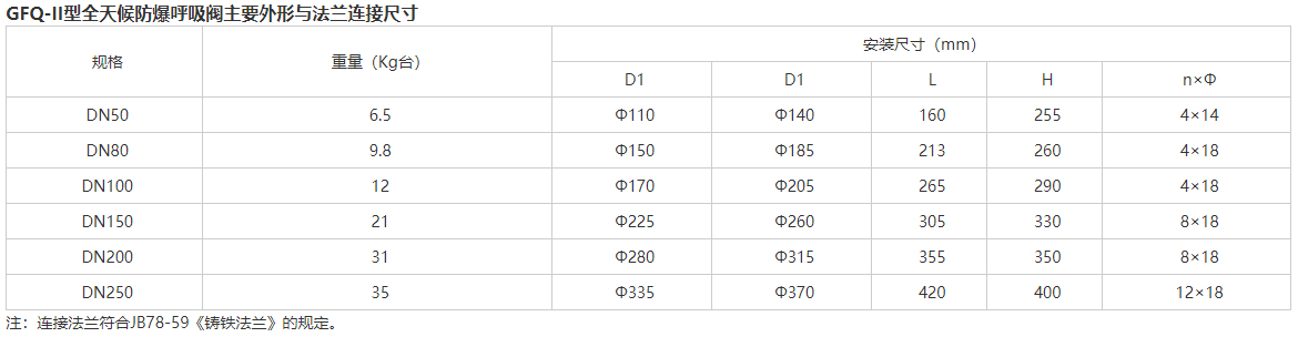GFQ-II型全天候防爆呼吸閥主要用途 沃茈閥門(上海)有限公司生產(chǎn)銷售的GFQ-II型全天候防爆呼吸閥用于安裝原油、汽油、煤油、輕柴油、芳烴等固定頂式儲罐上的主要安全設(shè)備,是起蒸發(fā)損耗與保護(hù)儲罐在受超壓或真空時(shí)免遭破壞的作用。此閥通常與阻火器配套使用。 GFQ-II型全天候防爆呼吸閥主要特點(diǎn) 本閥具有通風(fēng)量大,密封性能好,泄漏量小,耐腐蝕等特點(diǎn)。